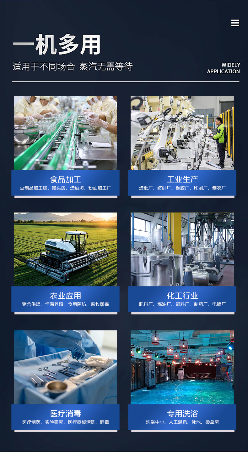 蒸汽量:50kg至6T,無內膽,水容積<29L、產汽快、免報檢,低氮燃燒NOx排放<22mg/m3,符合環(huán)保要求,310S不銹鋼過流件直流環(huán)管結構,達到衛(wèi)生級別,溫度、壓力、可定制,更多參數可致電15323300918...